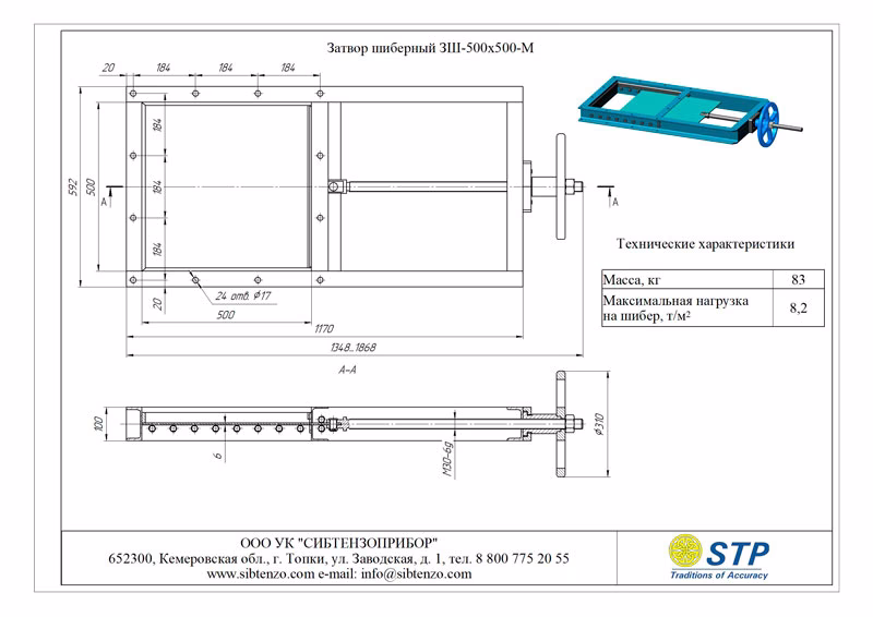 Затвор шиберный 3Ш-500х500-М из высокоуглеродистой стали вы можете в нашей компании «Сибтензоприбор»‎.